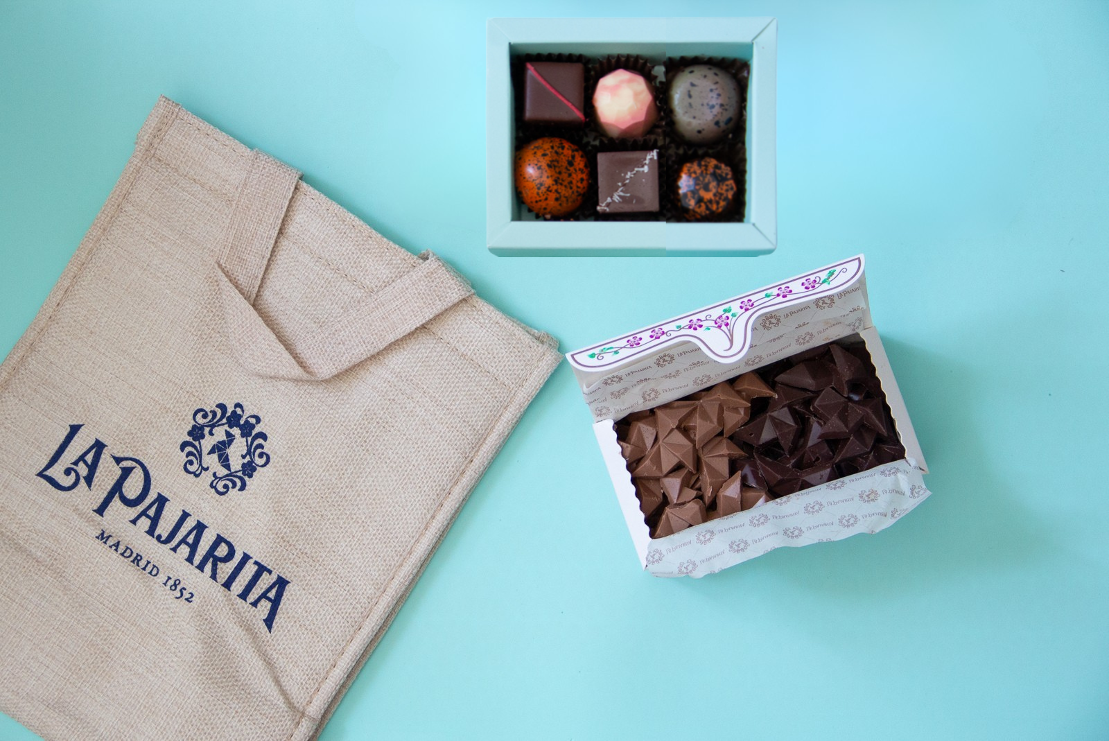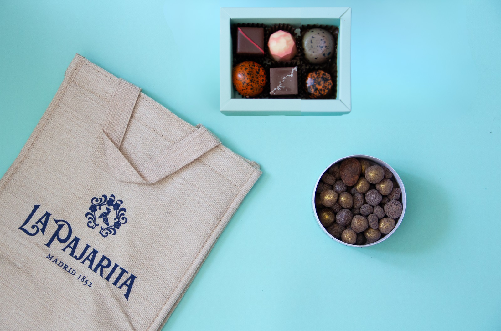 It features La Pajarita’s iconic blue logo and the official “Alma de Madrid” seal — a tribute to the heritage that has defined us since 1852. Its insulated interior and discreet velcro closure help preserve the freshness of chocolates and bonbons, turning this bag into part of the gift itself.